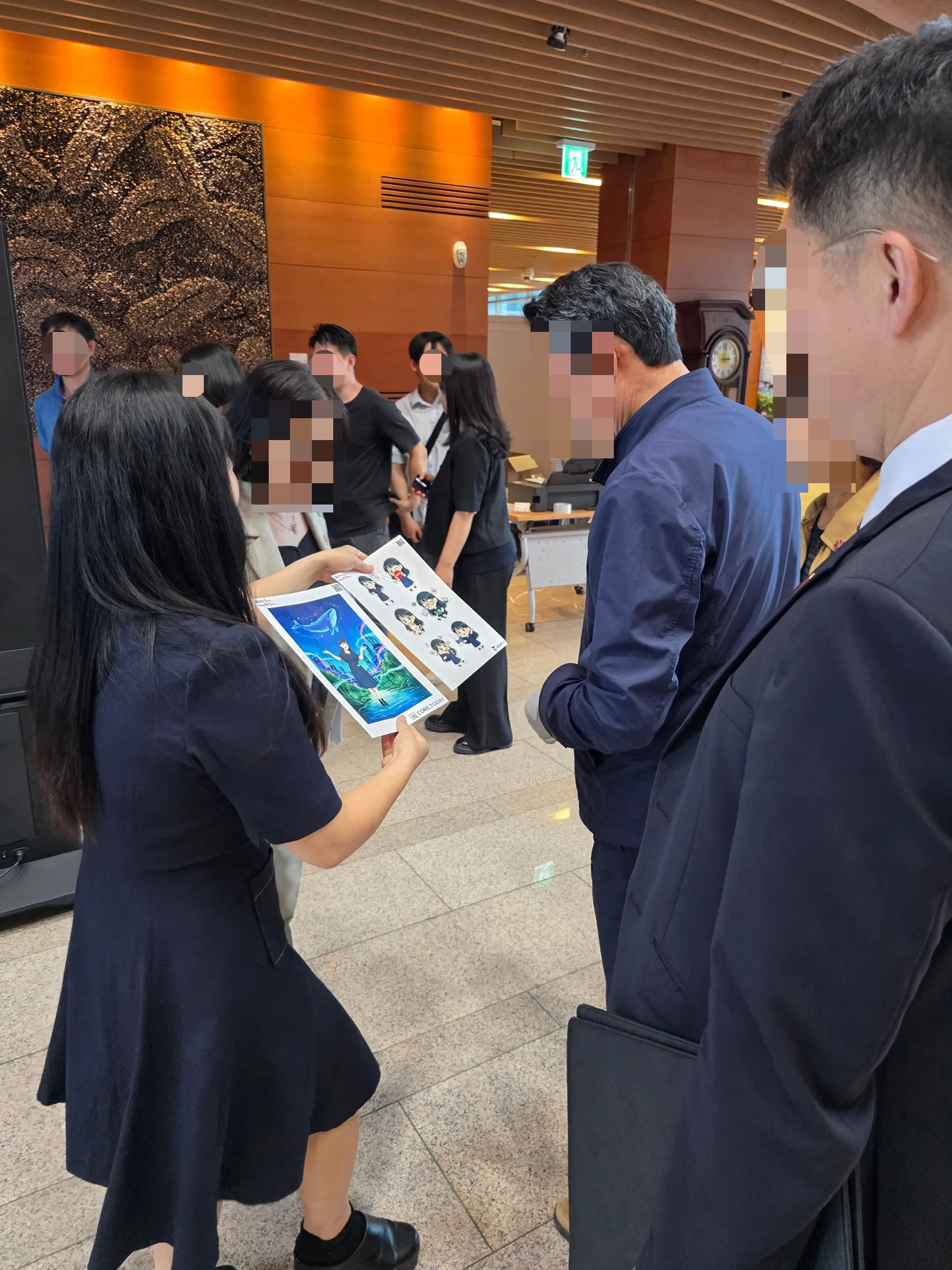 ① AI Photo Zone (글로벌 롯데 체험) 임직원 사진을 찍으면 '세계 각국의 전통 의상'을 입은 모습으로 변환됩니다. 배경에는 롯데 계열사(백화점, 호텔 등)의 상징을 결합해 "우리는 글로벌 롯데"라는 소속감을 시각화했습니다.